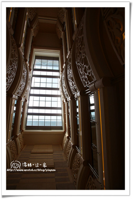 深色的絨布牆外則以金色的 線條為框,加上燈光的點綴,更能感覺出劇院的金碧輝煌。