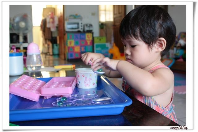 滾妹想到就自己拿彈珠及工具來玩,只是有時候會"偷吃步"