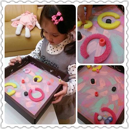 其中,滾媽有試著以別的材料來當大圈圈的部分,例如膠帶紙捲,